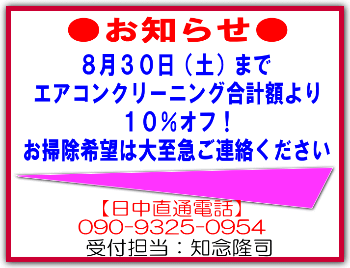 先程、エアコンの修理も終わりました。やはりモーターに問題があったとのことで、三田クリーニングサービスさんには申し訳ない限りです。