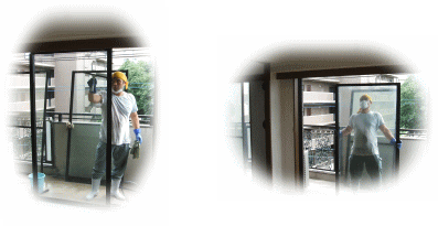 ベランダバルコニーはき出し窓ガラス (サッシ枠・網戸清掃込み) 1枠(窓ガラス2枚)セット (幅1000mm以下×高さ1800mm以下) |